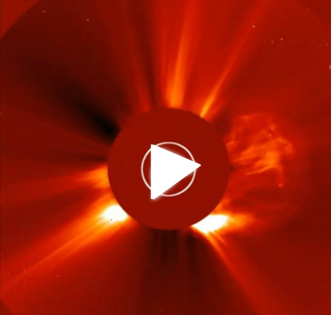 On July 23 2012 the fastest CME recorded by STEREO blasted away from the sun at a staggering 3,400 km/s (7.6 million mph.) That’s New York to Rome in 2 seconds. This rates as Extremely Rare on NASA’s CME speed scale and we can expect one this fast to occur only once every 10 years. While CMEs might be big you won’t be able to see one if you look up. Solar spacecraft are fitted with very sensitive cameras to capture the tenuous outflow of particles. Here’s how STEREO Ahead’s Cor2 (coronograph) recorded the event.